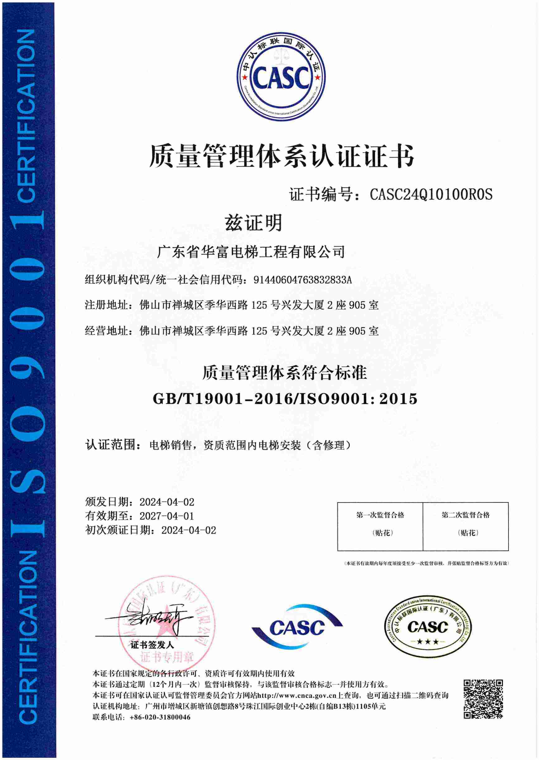 ISO9001質量管理體系證書